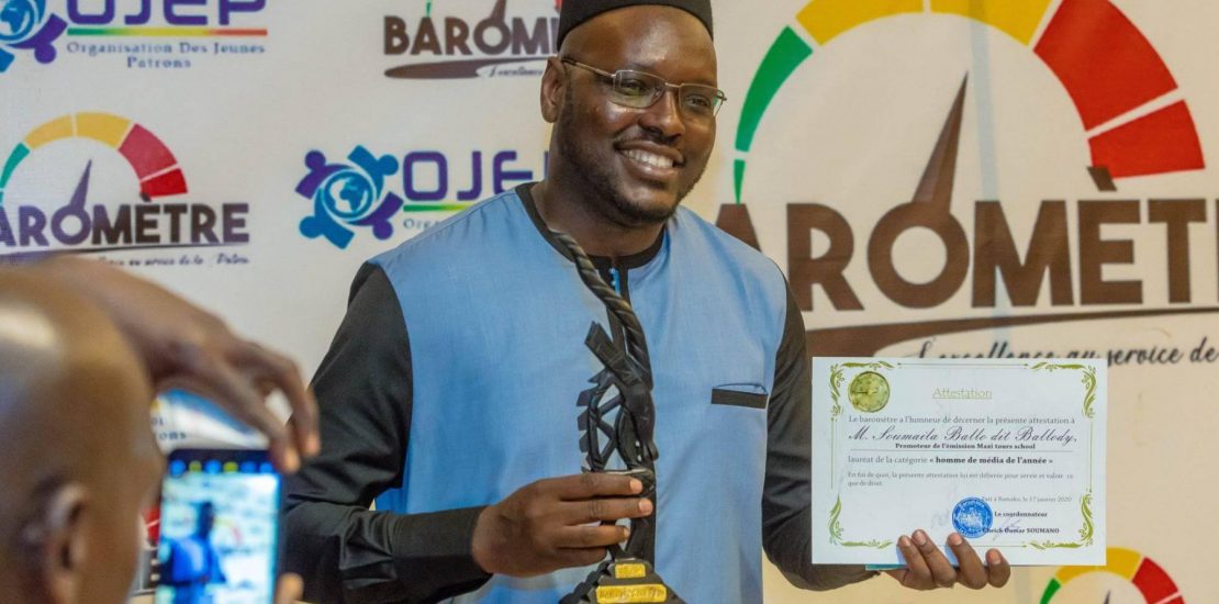 Le jury de Baromètre dévoile le “Meilleur homme de média” de l’année 2019: M. Soumaïla BALLO, dit Ismaël Ballody, promoteur et producteur de l’émission de téléréalité “Maxi Tour School”, opérateur culturel et économique, PDG de Prestige Consulting, lors d’une cérémonie à la hauteur des lauréats.